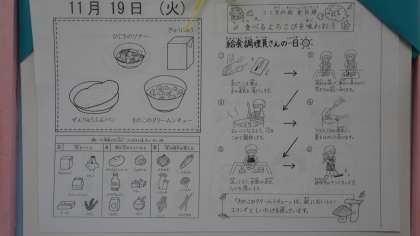 今日の献立は,「全粒粉パン・牛乳・きのこのクリームシチュー・ひじきのソテー」でした。今日は寒い一日だったので,シチューを食べてあたたまりました。