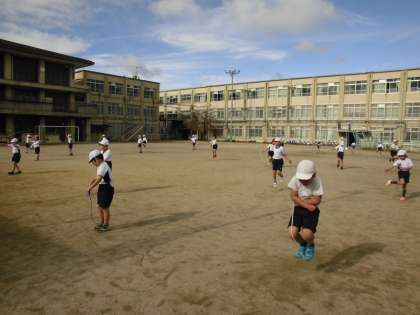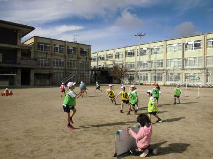 寒い中ですが,運動場での体育を頑張っています。なわとびで体を温めた後,パスゲームをしました。