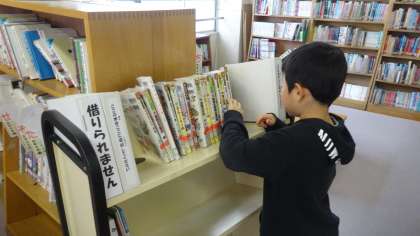 冬休みに借りていた本を返却し,新しくまた本を借りました。みんな本が大好きで,図書室での読書に没頭しています。