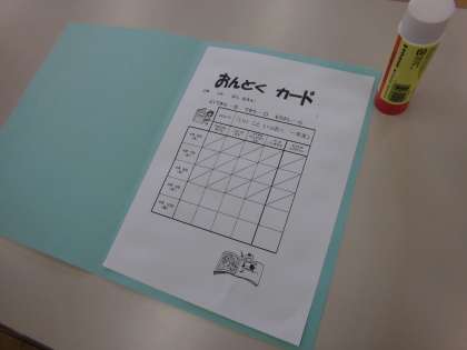 2.日付が1番古いカードを,表紙を開いた右側の全面にのりで貼ります。