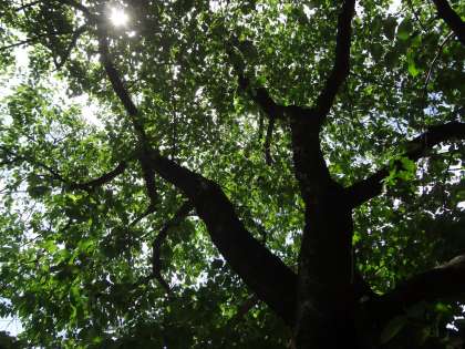 〜上の写真は,下鴨小学校正門前の桜の木です。4月の入学式では,満開の姿を見せてくれた桜の木。今は,初夏の柔らかい日差しの下で,わかばをつけて青々としています〜