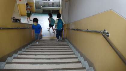 ・階段ののぼりおりは,右側通行で歩きましょう。