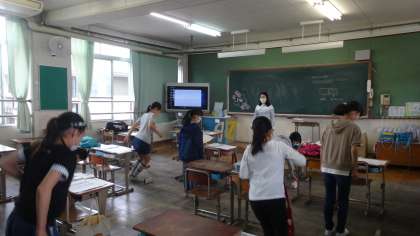 久しぶりに顔を合わせた5年生。ストレッチなどで体ほぐしもしました。5年生から始まる家庭科の学習で使う裁縫セットも届きました。学校再開が待ち遠しいです。