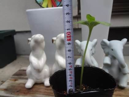 ヒマワリもぐんぐん育っています。高さは,10センチメートルほどだったのが,13センチメートルまで成長してきました。大きくなってきたので,学校園の3年生のコーナーに植えかえます。