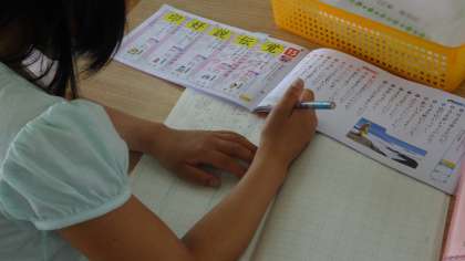 低学年と高学年に分かれての学習です。それぞれの課題を先生と一緒に頑張って取り組んでいます。