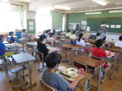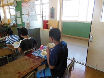 給食が始まりました。6年生のある児童は,「給食♪給食♪」と心弾ませながら給食時間を迎えていました。新しい様式で,スタートしましたが,久しぶりの給食に喜んでいました。