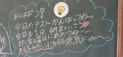 5年生の伝言板の中で「テストがんばってね。」というメッセージがありました。メッセージを受けて,今日登校してきたメンバーが集中してテストに取り組んでいました。