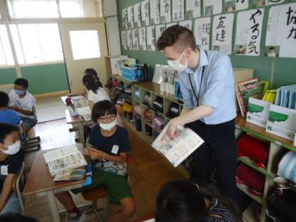 今日はALTの先生と一緒にUnit1 This is me.の単元の学習をしました。子どもたちは今まで学習した英語でALTの先生の出身地,できること,好きなことをたずねました。そのあとでソーシャルディスタンスを保ちながら2人一組になって教科書に登場する動物のできることや出身地などをたずね合う活動をしました。