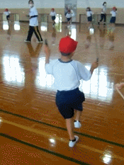 今日の体育は,なわとびをしました。前跳びをしたり,けんけん跳びをしたりしました。失敗しても何度も繰り返し取り組んだり,続けて跳んだり頑張っていました。