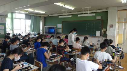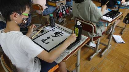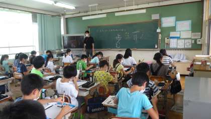習字の時間は,担任の先生が入れ替わって学習を進めていきます。ポイントを確認してから,これまで学習してきたことも頭に入れてていねいに取り組んでいました。