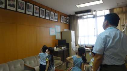 1年生は,学校にどんな教室があるのか,まだまだ分かりません。今日は校長室を見学させてもらいました。少しずつ学校の様子がわかってきているようです。