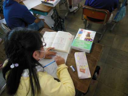 今日は,漢字辞典を使いながら,言葉を調べたり,漢字の読み方を確認したりしました。使い方もだいぶ慣れてきたようで,総画数や読み方などから調べたい文字を探していました。