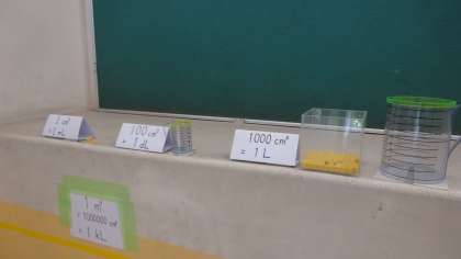 体積の学習をしている5年生。1㎥に引き続き,1リットルますが登場です。かさの感覚をとらえてほしいと思います。