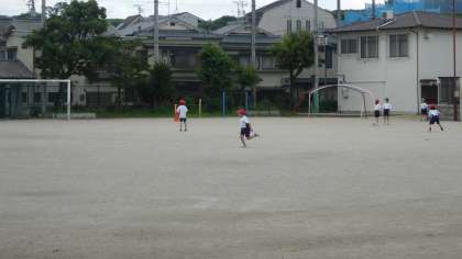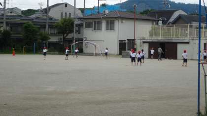 広い運動場をいっぱいに使ってかだらを動かしました。少し動いただけで汗が噴き出てしまう暑い日でしたが,みんなでしっかり体を動かしました。