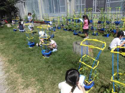 ミニトマトの観察をしました。前回の観察より,大きな実がたくさんできて,いつ収穫できるのかとても楽しみにしています。