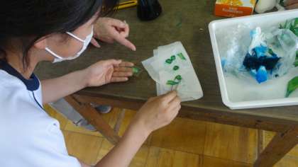 「植物の成長と水の関わり」の学習です。根から吸い上げられた水がどのように植物全体にいきわたっているのか観察です。水の通り道がくっきりとわかり,みんな意欲的に調べていました。