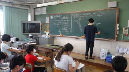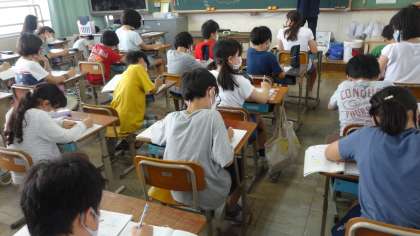 わり算の筆算の学習がだいぶ進んでいます。今日は割り切ることができないわり算の商を概数で表す方法について学習しました。計算間違いに気を付けながら,集中して取り組んでいました。