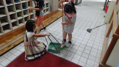 3年生は,本館の玄関や廊下を掃除してくれています。お客さんがよく来校される本館を,一生懸命に掃除してくれています。