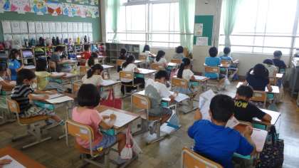 「たんぽぽのちえ」のテストです。学習してきたことを振り返りながら,集中して取り組んでいました。