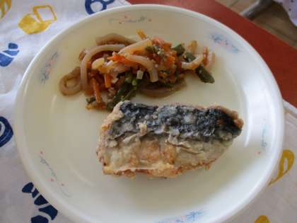 学校の給食室で衣をつけて油で揚げた「さわらのたつたあげ」は,