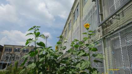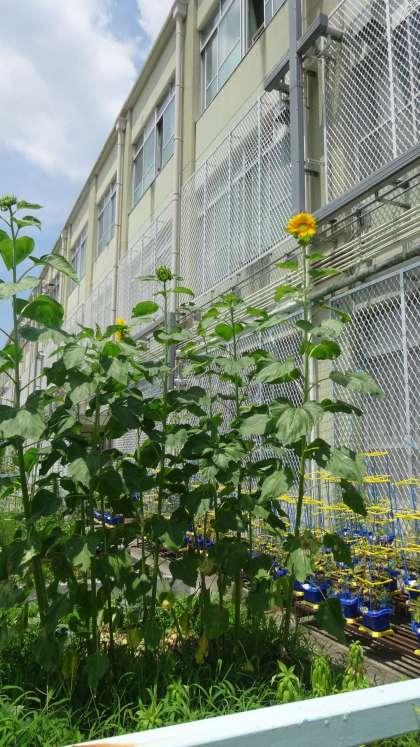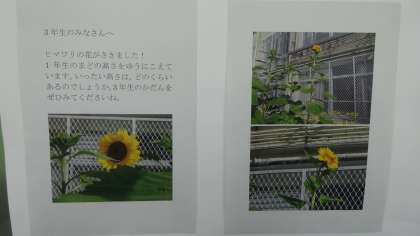 理科担当教員から3年生へのメッセージが掲示されています。自然大好きな3年生は,興味をもって観察しています。