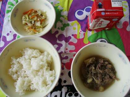 今回は,牛肉を使い,料理酒としょうゆ,三温糖だけで