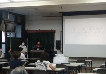 最近流行のSNS等について事例を挙げながら,メリットやデメリットについて考えました。当たり前になっている今のネット社会で生活していく上で,何を子どもたちに伝えていかないといけないか,教職員で研修しました。