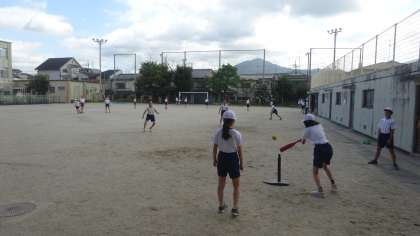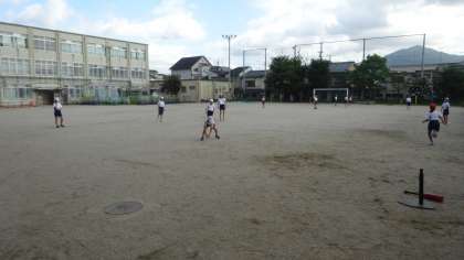 ベースボールの学習です。学習が進むにつれて,動き方も理解してきているようです。チームの声かけも,活発になってきています。