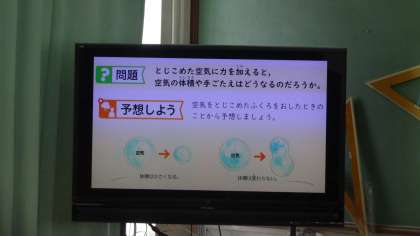 理科の学習の様子です。まずは予想を立ててから課題について考えていきます。予想を立てるときには,これまでの経験からみんなで予想していきます。