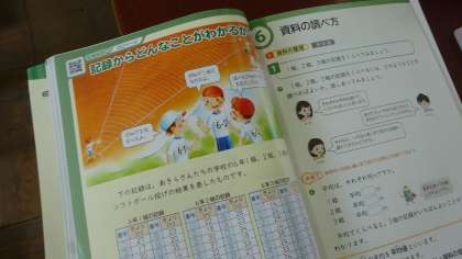 資料の調べ方の学習です。「最頻値」や「代表値」等の算数用語も学習するごとにしっかり確認していきます。