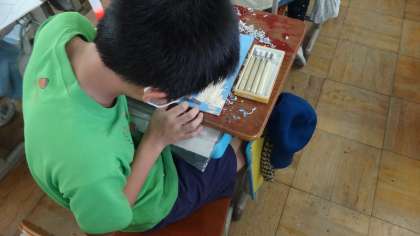 版画の学習の様子です。時間をかけて丁寧に彫り進めています。