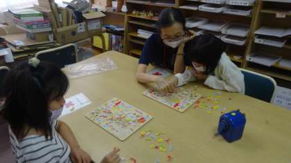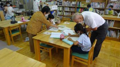 放課後まなび教室の時間,まずは,宿題に取り組みます。宿題が終われば,プリントをたくさんしたり,日本列島パズルに挑戦したりと,スタッフの先生と一緒にそれぞれ有意義に過ごしています。