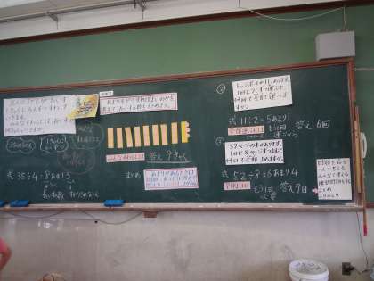 「あまりのあるわり算」の学習です。今日の算数科の学習では,「あまりを考えて」ということを,文章題を通して考えました。わり算の答えのあまりをどのように考えて答えに表したらよいのかということを,自分で考えたりクラスで話し合ったりしました。答えを導き出す時に,絵や図を使って分かりやすく表し,ペアで話し合いました。あまりをどのようにすればよいのか・・・しっかりと文章題を読んで求められていることに合わせて答えを出すことを学習しました。