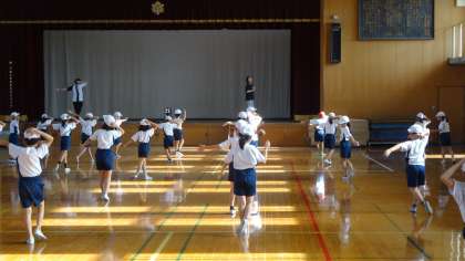 スポーツフェスティバルに向けての練習です。体の動かし方,目線など,細かなところにも気を配っていきます。動きが少しずつレベルアップしているのがわかります。