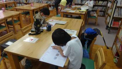 放課後まなび教室の前半は,1年生が宿題などの課題に取り組んでいます。スタッフの方ともすぐに打ち解けているようで,頑張って課題に取り組んでいます。