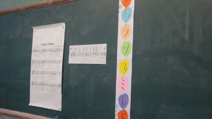 リズムにのってみんなで合唱です。マスクをつけて歌うので,思うようには歌えませんが,今できる楽しみ方で音楽の時間を楽しんでいます。