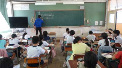 2組の教室で,1組の担任の先生と一緒に学習です。いつもと違う雰囲気ですが,みんな楽しそうに集中して学習に取り組んでいます。