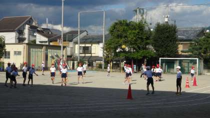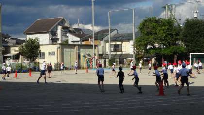 4〜6年生のクラブ活動。思い思いにそれぞれのクラブで活動していました。写真は運動場スポーツクラブの活動の様子です。