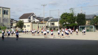 スポーツフェスティバルに向けて,今日は運動場に出てきて練習です。初めての運動場での練習で,まだまだ戸惑いも見られますが,本番に向けてみんなで頑張っています。