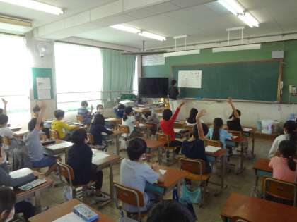 「食べ物のはたらきについて知ろう」をテーマに,今日は,栄養教諭の河合先生に食べ物のはたらきについて教えていただきました。毎日食べている給食を通して,食べ物の大切さを教えていただきました。大変分かりやすい授業で,みんな集中して話を聞いていました。