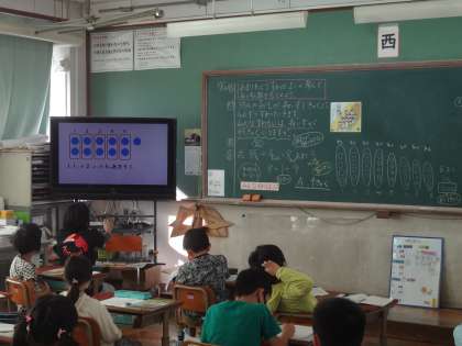 「あまりのあるわり算」の学習です。今日は,わり算のあまりをどのように考えて答えを導くかということを,学習しました。問題文をよく読み,式を考えました。どのように考えたのかということを,となりの人と伝え合い,クラスで話し合いました。たずねられていることが何なのか,どのように答えたらよいのかということを,図や絵をかき考えました。