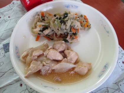 「鶏肉のあまから煮」は,鶏肉と玉ねぎを砂糖やしょうゆを