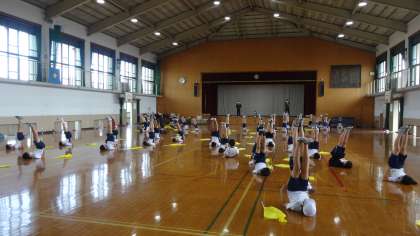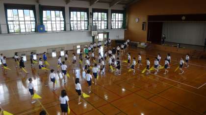 スポーツフェスティバルに向けての練習です。小学校生活の集大成として,みんなで気持ちを込めて取り組んでいます。本番に向けてさらに高めていきます。