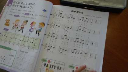 拍にのってみんなで楽しく合奏です。タンバリンやカスタネットを使って,みんなでリズム打ちを楽しみました。