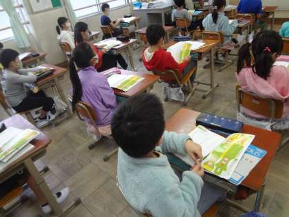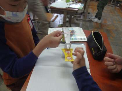 算数科では,「重さ」の単元に入りました。今日は,文房具の重さをくらべました。教科書にある「てんびん」を組み立てて,重さをくらべました。その時,一円玉を使って「てんびん」がつり合うように確かめていきました。