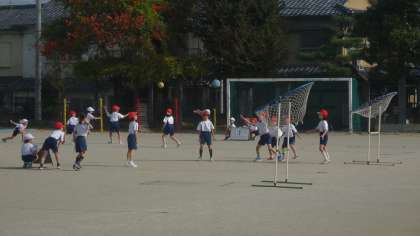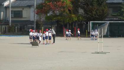 パスゲームの学習が始まりました。チームでパスをつないで,シュートを狙っていきます。1年生での学習も思い出しながら,さらなるレベルアップを目指します。