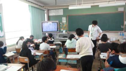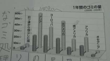 国語の時間,「社会は良い方向に進んでいるか」ということを,資料を基にして考え,自分なりの意見を文章にまとめています。