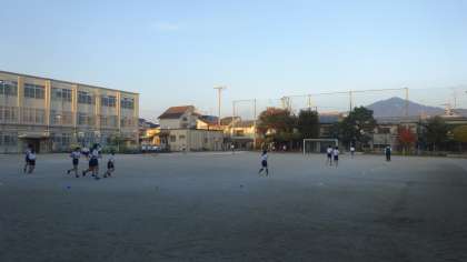 陸上部は運動場で走り込みです。6年生は記録会に挑戦したい人もいるようで,練習にも熱が入ります。