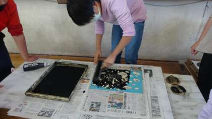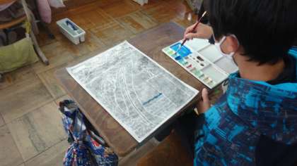 版画に取り組んできましたが,最後の仕上げです。白黒の版画に絵の具で色を付けていきます。なかなかいい作品に仕上がっています。