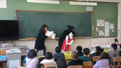 お話の会の方々によるお楽しみ会。今日は1年1組で楽しいお話を披露していただきました。いつもありがとうございます。次回は12月16日に1年2組で行われます。